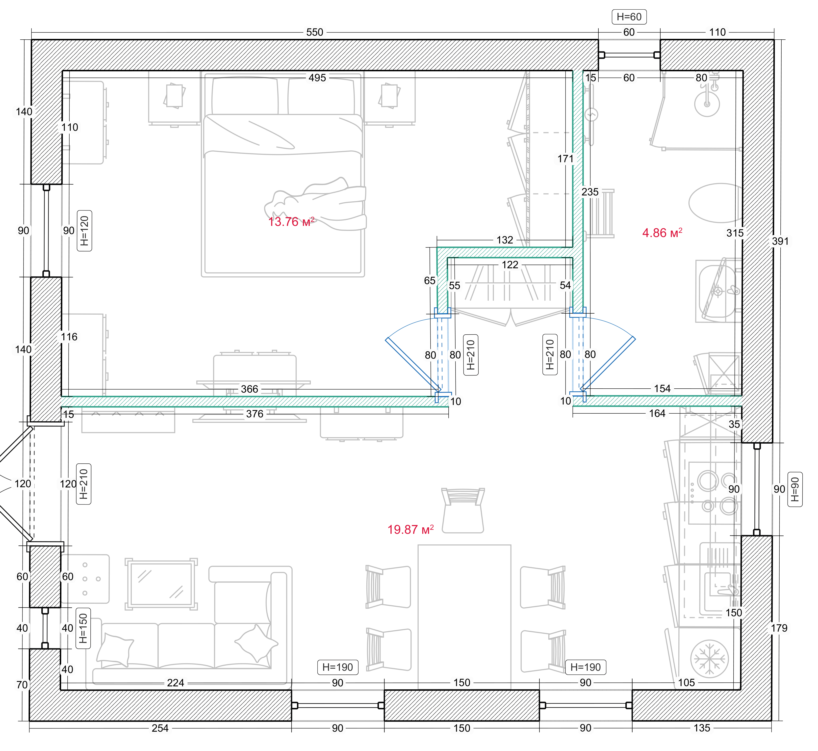 Материал легко обрабатывается: полистиролбетон можно пилить, сверлить, хорошо удерживает крепеж. Это значит, что изменения, перестройки и доработки в планировке возможны как на этапе строительства, так и после. Возможность изменения конкретного проекта определяется программой и условиями поставки каждого отдельного домокомплекта, что необходимо уточнить до подписания договора.
